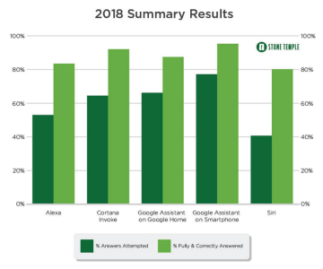 ROAST ise, Google’a odaklanıyor ve 22 dikey için sesli aramayı araştırıyor. Stone Temple raporu, 2017 sanal asistan çalışmasının bir devamı niteliğindedir ve bu nedenle, geçen yıl sesli arama sonuçlarının nasıl değiştiğine ve iyileştirildiğine dair bilgiler sağlayabilir. 2018 çalışması, Alexa, Cortana, Google Asistan (Ev ve akıllı telefon) ve Siri ile karşılaştırıldığında, yaklaşık 5,000 sorgu kullanıyor.